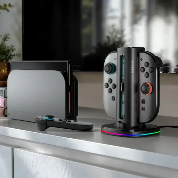Power Ready, Game On. THUNDER PRO PlayDock charges four Joy-Con 2 controllers simultaneously via USB-C. With real-time LED indicators, a compact weighted base, and precise docking design, it ensures stable performance and multiplayer readiness throughout every session.